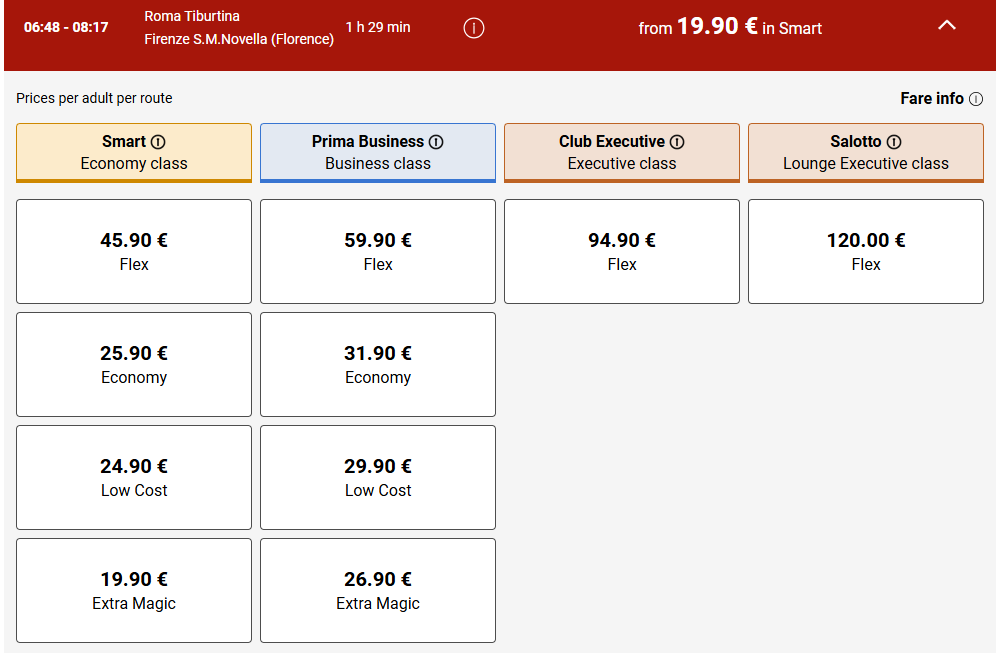 📉 로마-피렌체 구간 가격 변화